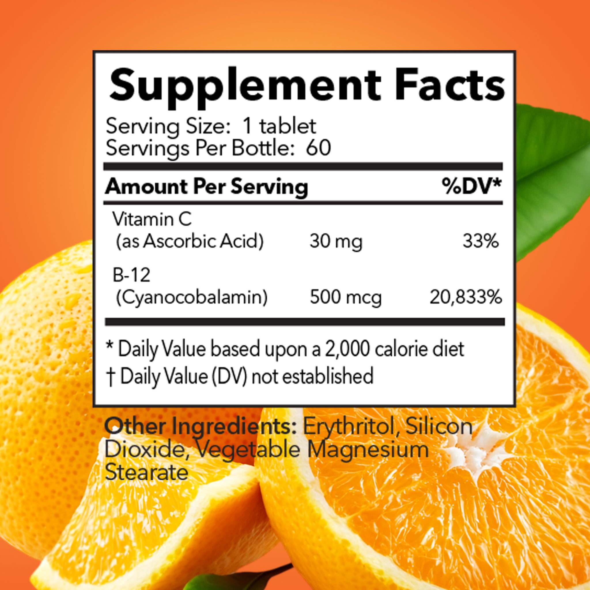 Burst of Energy: Our B12 and Vitamin C supplement is like a burst of sunshine in a bottle. With the power of these essential vitamins, you'll feel recharged and ready to tackle your day with enthusiasm.